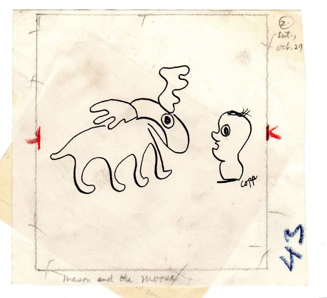 The next set of drawings is from the album “Jim Copp Tales” (1958). They existed inside a “cartoon wheel” feature as part of the album cover.