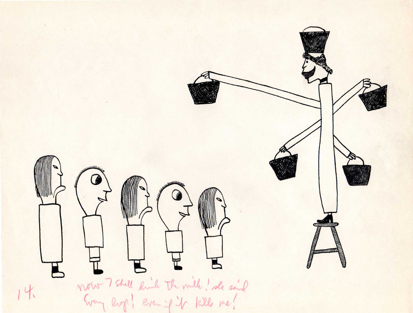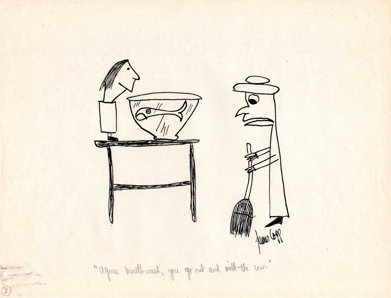 The following drawings are from “Agnes Mouthwash & Friends“. You can watch Jim Copp perform “Agnes”, click here!