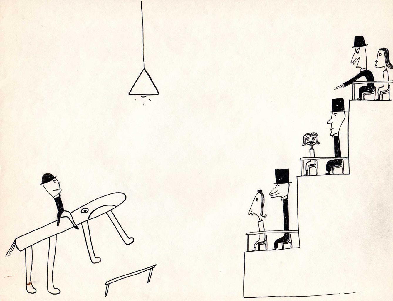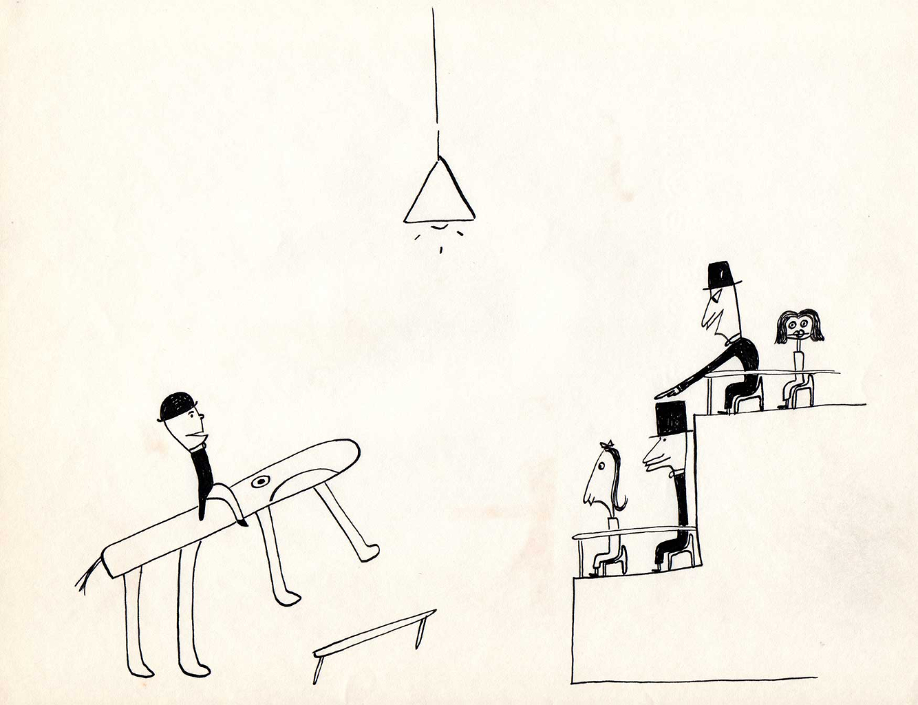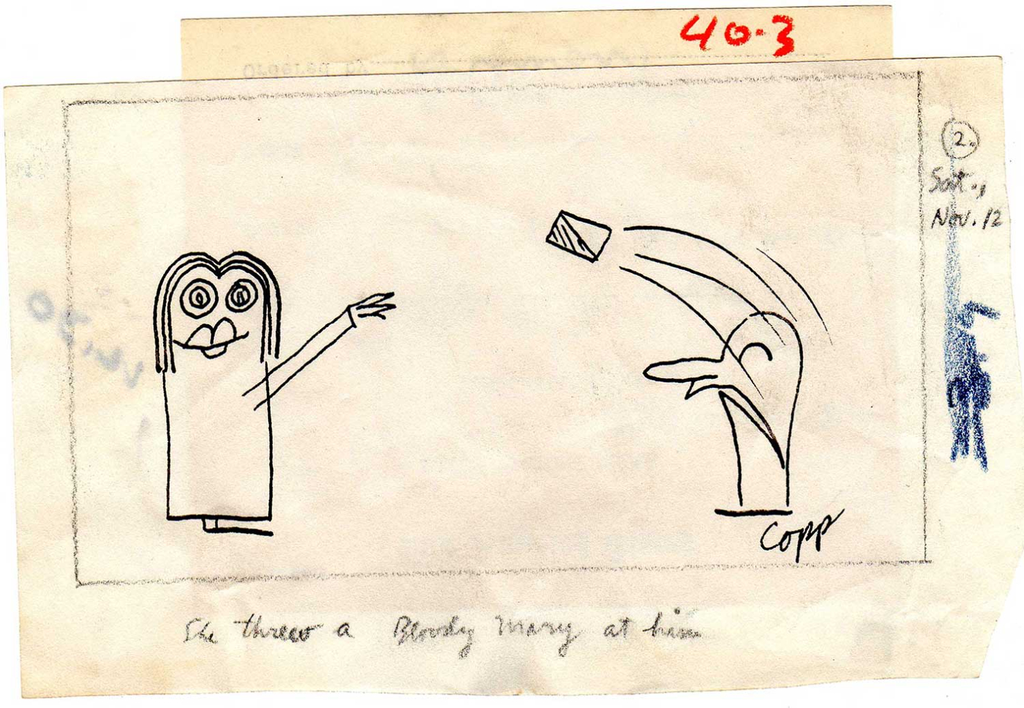 The next set of drawings is from Jim’s stint as a columnist for the LA Times. The name of the column was “Skylarking with James Copp”. This was in the early 1950’s.